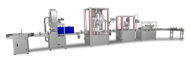 馬口鐵聽奶粉灌裝生產線:自動卸罐、理罐、空罐吹掃殺菌、雙頭稱重充填、罐自動分配、自動抽真空充氮封罐、罐身自動清理(除靜電、掃塵)、自動打碼、自動翻罐、自動壓罐蓋、人工或自動裝箱等工作;
